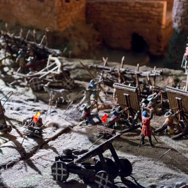 Animated scale-model displays with moving figures, lights, and sound effects