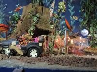 . La boite de nuit, la piste de danse est un vieux phonographe. Les tables de la buvette des boites de camembert. Les toitures, sur la souche de droite élaboré à partir d`écailles de pommes de pin, sur la souche à gauche à partir d'aiguilles de pin